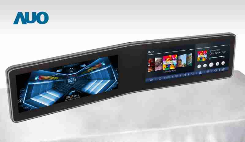 赏金国际 V 型曲面驾驶舱显示器,,,采全贴合拼接仪表板及中控台显示屏 |