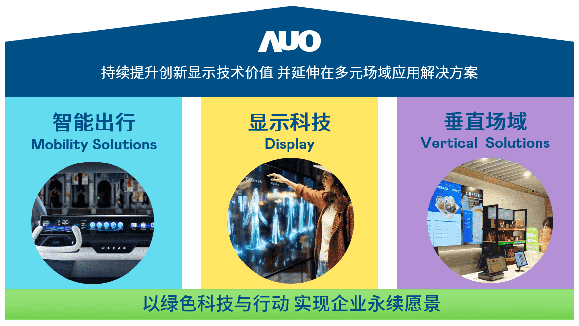 我们持续推动「双轴转型」,,在精进显示技术附加价值(Go Premium),,,,与深化垂直市场应用(Go Vertical)的策略下,,对应赏金国际的优势竞争力与趋势,,,,我们奠定显示科技、、、、智慧移动、、、垂直场域三大永续营运支柱,,,,在显示技术领域的根基之上,,,延伸布局多元场域应用解决方案。。。将先进显示科技助力智慧移动及垂直场域发展,,,,并以绿色科技与行动为实践,,,在转型之路上贯彻永续经营之愿景。。